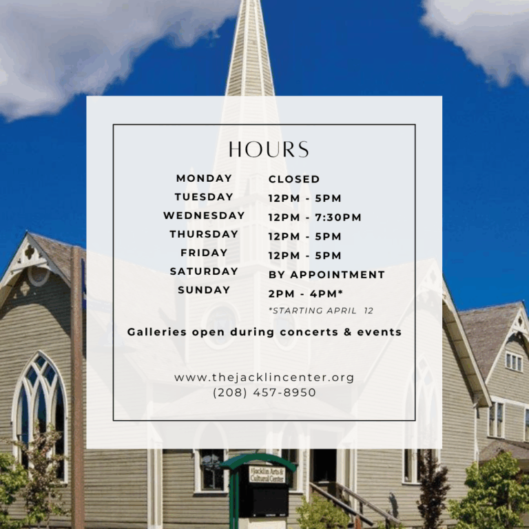 The Jacklin Arts & Cultural Center is Post Falls' creative heart—a nonprofit community space where art, music, and connection thrive. Housed in a historic church on the National Registry, we bring people together through exhibitions, concerts, classes, and events that make the arts accessible to everyone.