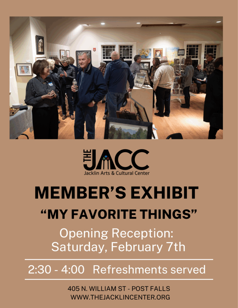 At the Jacklin Arts & Cultural Center, we love and support the arts and the artists who create them. Our galleries showcase rotating exhibitions featuring talented local and regional artists, with artwork displayed not only here at the JACC, but also at the Kootenai County Courthouse and Post Falls Visitors Center. All artwork is available for purchase—if you’re interested in a piece you’ve seen, please contact our office at 208-457-8950.